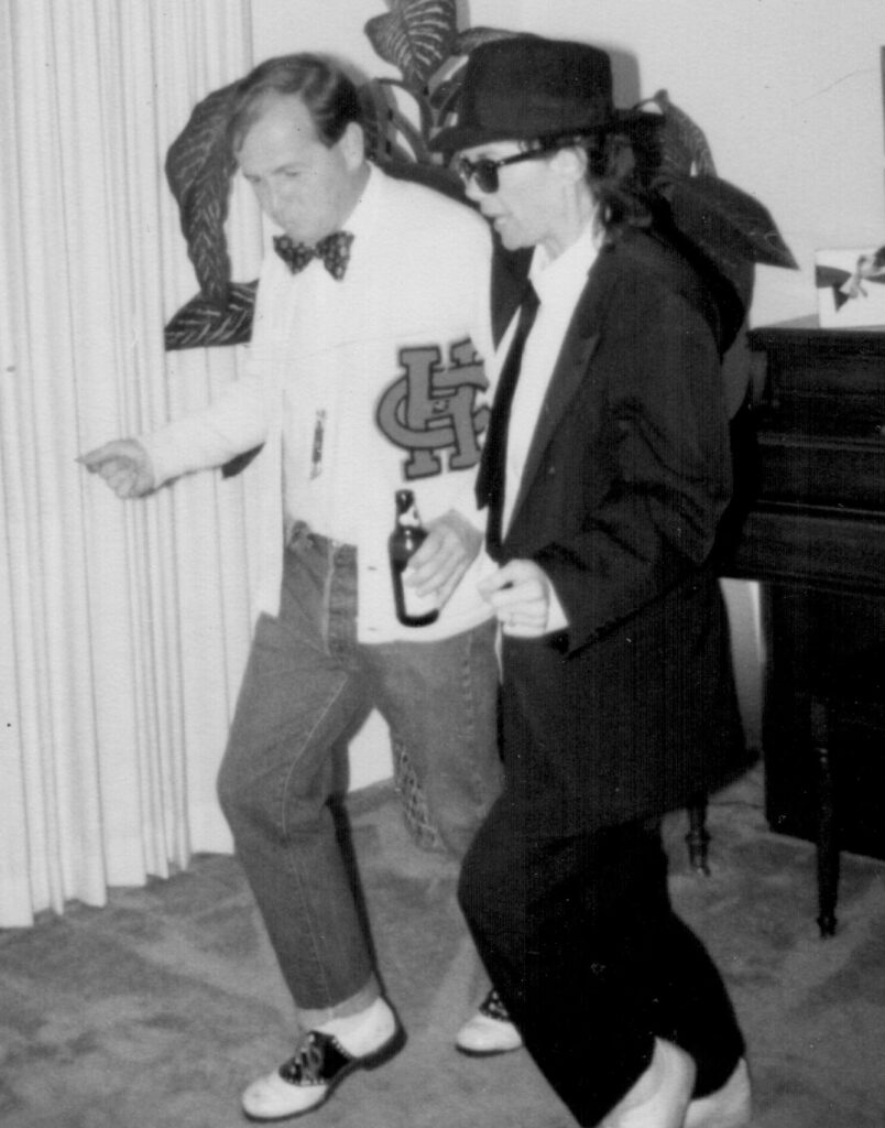 The lady, dressed in my Booze Brother’s hat, and the goofy guy recalling a life long ago at a 1987-88 Halloween Party, laying it down.